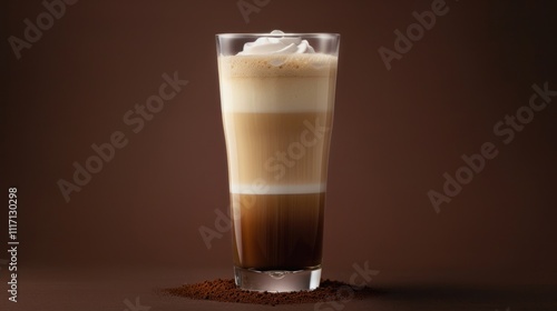 hot drink, drink, layered, whipped, cream, glasses, espresso, milk, brown, background, ground, beverage, caffeine, delicious, tasty, sweet, foam, smooth, rich, aromatic, energy, morning, breakfast, cafes, barista, food, photo, still, life, composition, lighting, studio, texture, colours, contrast, simple, elegant