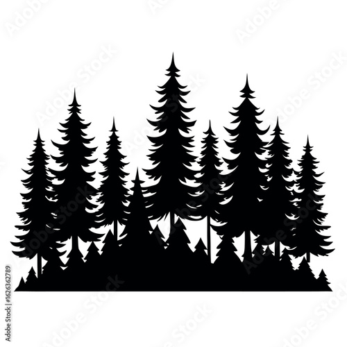 pine, tree, forest, nature, landscape, evergreen, conifer, timberland, silhouette, black, and, white, minimalist, graphic, design, vector, illustration, isolated, on, background, wilderness, seasonal, winter, summer, pattern, art, stylised, outline