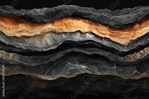 rock, stone, geology, layer, strata, texture, colours, black, dark, grey, brown, orange, gold, earth, nature, landscape, formation, pattern, abstract, background, mineral, mountain, cliff, surface, detail, rough, rugged, solid, hard, natural, sedimentary, metamorphic, igneous, rockface, canyon, geologic, earth science