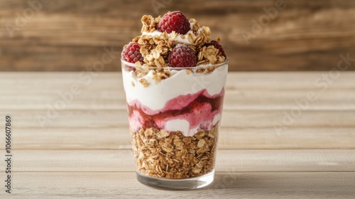 Layered Yogurt Parfait with Granola and Raspberries