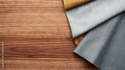 Layers of different textures like wood grain, fabric, and stone combined in a minimalist composition.