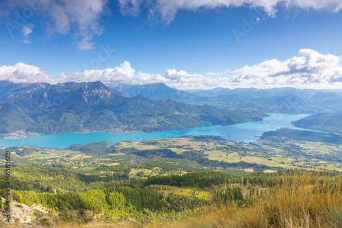 Le Lac de Serre-Ponçon sous un ciel nuageux en Fance