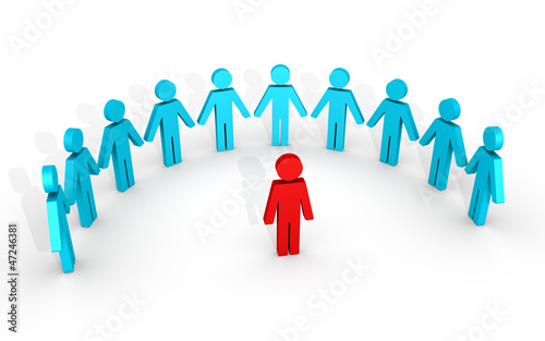 three-dimensional, blue, boss, business, businessman, chief, circle, community, company, concept, connection, cooperation, employee, figure, group, half, human, illustration, leader, manager, meeting, middle, network, organisation, partnership, people, person, protect, protection, red, human relationships, render, safety, shadow, single, staff, standing, surrounding, symbol, team, teamwork, together, trust, union, oneness, white, men at work