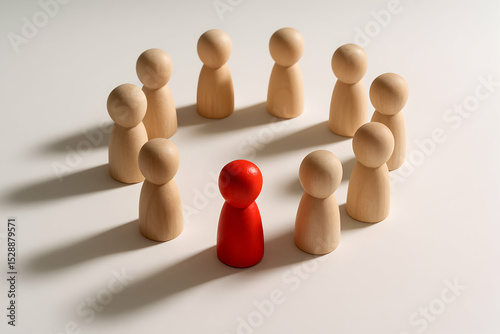 Leadership and Teamwork A Visual Metaphor of a Red Leader Figurine Surrounded by a Team