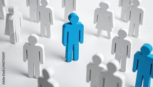 Leadership in action blue figure surrounded by crowd management representation professional setting
