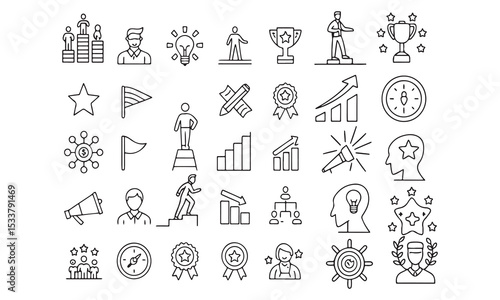 Leadership Line Icon Set – Vision, Strategy, and Team Management