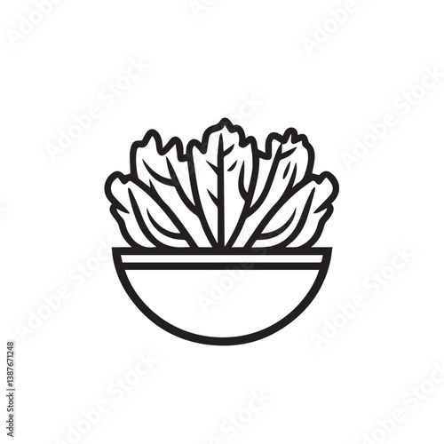 lettuce, greener, bowl, healthy, food, salad, vegetable, plant, vegan, vegetarian, diet, nourishment, fresh, simple, graphic, icon, outline, minimal, monochrome, isolated