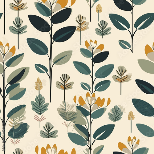 Leafy Serenity: Minimalistic Plant Pattern. Generative AI