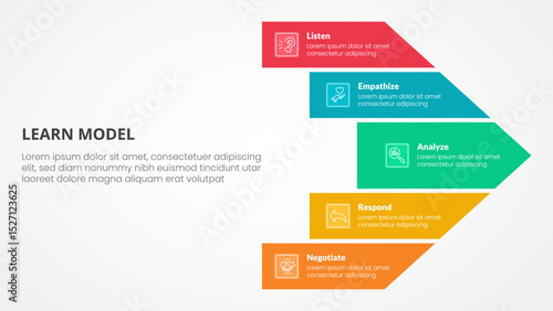 infographic, infographic, info, graphic, graphic, template, presentation, layout, step, stage, flat, style, element, design, creative, concept, banner, option, slide, slide, point, vector, illustration, 5, 5, learn, model, listen, canvasses, respond, negotiate, process, listening, skill, tool, framework, analysis, complaint, health, health care, communication, big, arrow, arrow, shape, right, direction