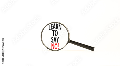 Learn to say no symbol. Concept words phrase Learn to say no in beautiful black magnifying glass. Beautiful white background. Business psychological Learn to say no concept. Copy space.