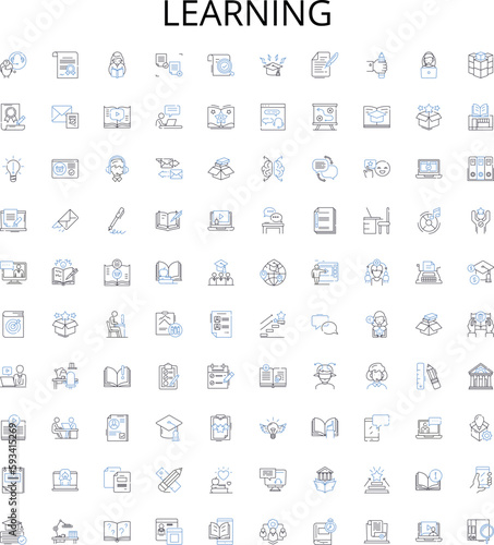 Learning outline icons collection. Instruction, Education, Enrichment, Schooling, Tutoring, Knowledge, Training vector illustration set. Skills, Comprehension, Acquirement linear signs