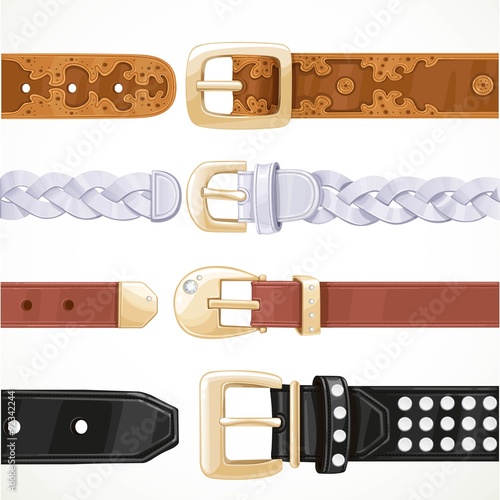 Leather belts with rivets and embroidery unbuttoned isolated on