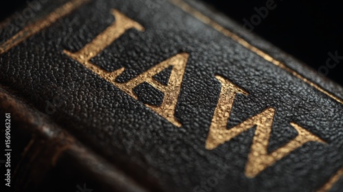 Leather-bound law book spine with golden embossed word LAW