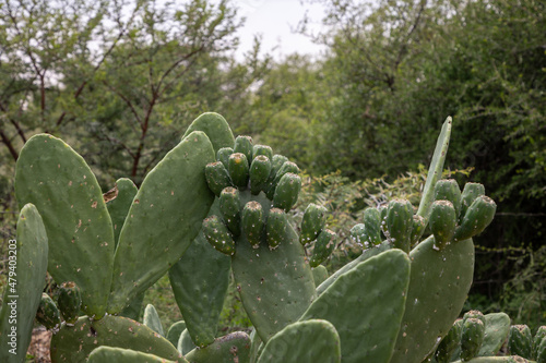 Leaves and fruit of a prickly pear plant in nature