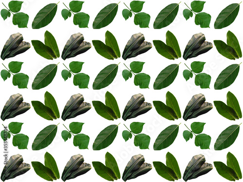 Leaves or Foliage pattern with a white background. Beautiful leaf pattern.