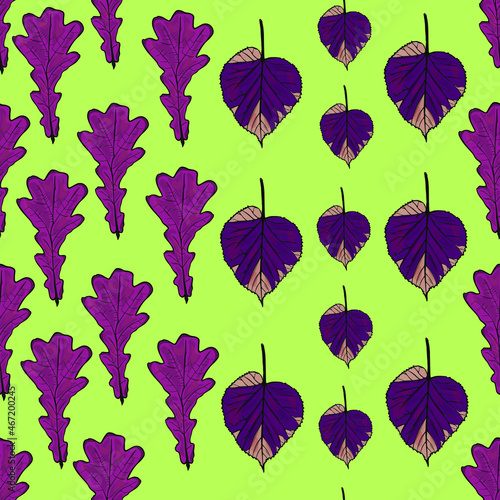 Leaves pattern. Seamless illustration of geometric leaves. Blank for designers, ornament, clothing, textiles