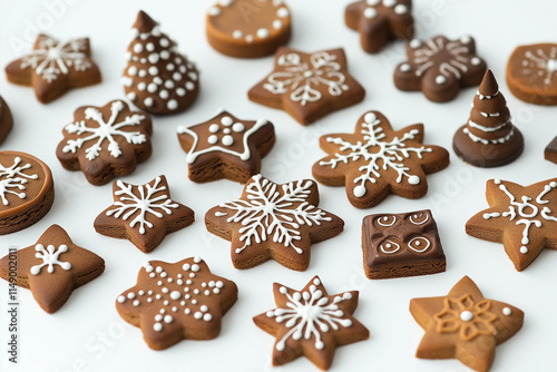 Leckere, dekorierte Weihnachtsplätzchen in verschiedenen Formen und Designs