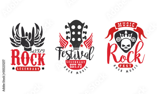 Legendary Rock Fest Logo Templates Set, Rock Music Festival Retro Labels Vector Illustration