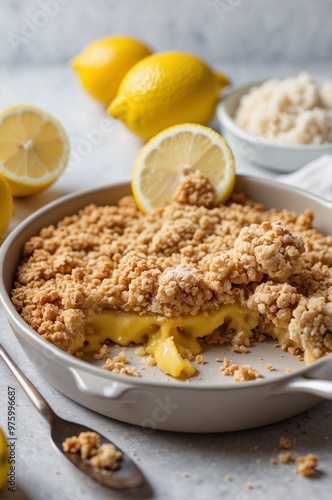 lemon, crumble, food, breakfast, bowl, meal, cereal, snack, dessert, fruit, healthy, delicious, sweet, baked