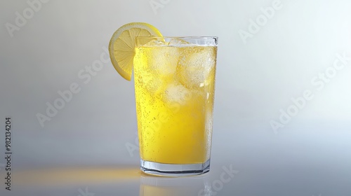 Lemon soda juice on a white background, perfect for a refreshing summer vibe.