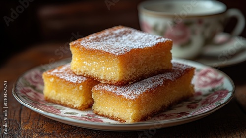 Lemon squares, tea, plate, wood, kitchen, dessert, food photography, baking, delicious