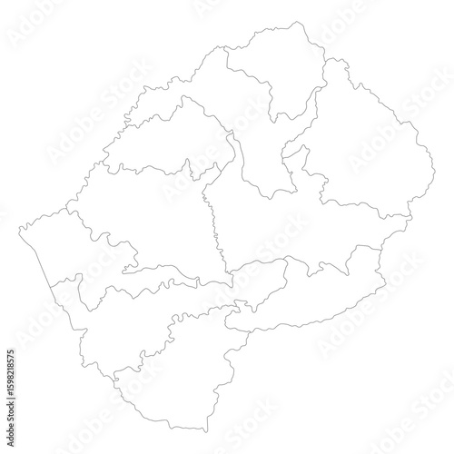 Lesotho map subregions. Map of Lesotho subregions in white color