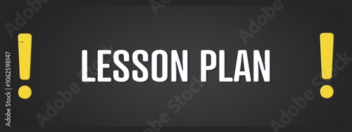 Lesson Plan.. A blackboard with white text. Illustration with grunge text style.