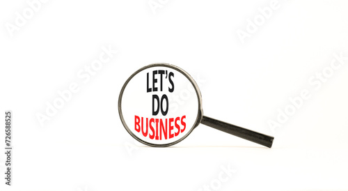 let is do business symbol. Concept words let is do business in beautiful magnifying glass. Beautiful white table white background. let is do business concept. Copy space.