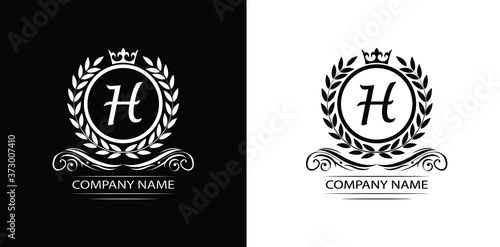 Letter H laurel wreath template logo Luxury letter with crown. Monogram alphabet . Beautiful royal initials letter.