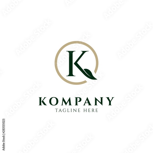 Letter K with leaf in the circle logo design template.Creative letter symbol for organic company