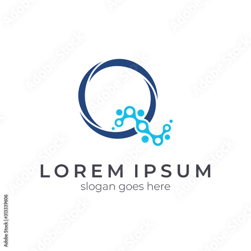 Letter Q logo with connection dots / liquid. Creative initial letter logo design