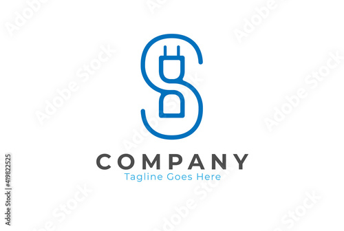 Letter S Plug logo, letter S from two cable plug combination, usable for electric or related business logos , flat design logo template,vector illustration