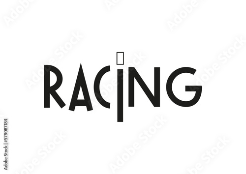 Lettering ofracing in black isolated on white background for poster, design, banner, sport club, resort, advertising, sport center, olympic games, sports shop, store, competition, tournament