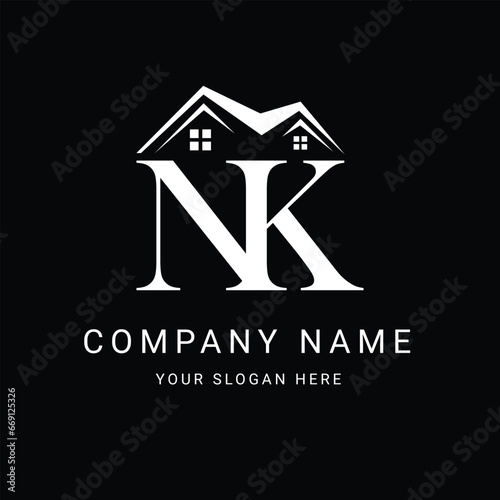Letters NK Real Estate Logo With Roof Building Corporate Business and Investment Template
