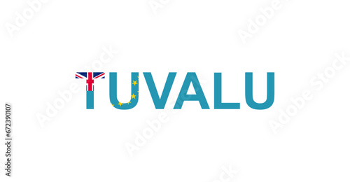 Letters Tuvalu in the style of the country flag. Tuvalu word in national flag style.