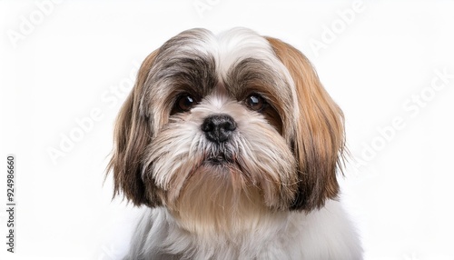 ラサ・アプソのポートレート(Lhasa Apso portrait on white background)