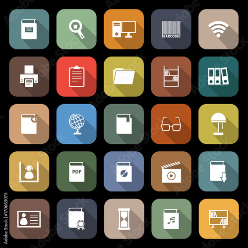 Library flat icons with long shadow