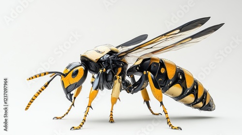 Lifelike Model of a Yellow and Black Flying Insect on White Background