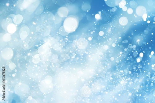 Light blue background with white bokeh, sparkles, and light rays, dreamy and cinematic blurred atmosphere with a soft glow