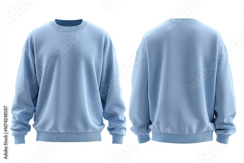 sweatshirt, light blue, blue, light, colours, unisex, clothing, fashion, casual attire, pullover, long sleeve, blank, design, template, apparel, style, trendy, fashion design, model, digital, illustration, three-dimensional, render, front, back, view, ribbed, neckline, sleeve, product, isolated