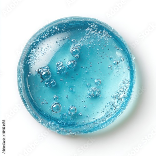 gel, blue, round, transparent, bubble, skincare, cosmetic, product, liquid, smooth, glossy, watery, clear, light, top, view, isolated, dripped, essence, serum, moisturiser, beauty, cosmetic, healthy, natural, fresh, clean, refreshing, soothing, airy, delicate, fragile, hydrating, substance, gelatinous, water, treatment, sample, topical, care