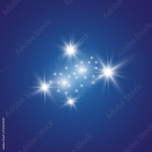 Light effect glow. Star flashed sequins. Abstract space background. Flash Highlight beam. Fantastic design.