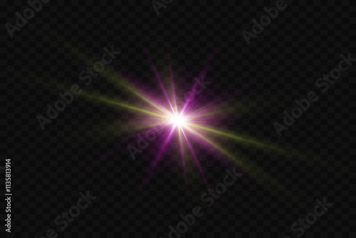 Light effect of star and flash, glare of rays and light. On a transparent background.