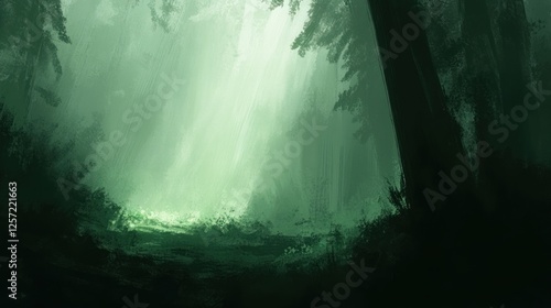forest, light, tree, green, dark, aethereal, mystical, painting, nature, wood, scene, landscape, abstract, artistic, illustration, digital, artwork, fantasy, tranquil, peaceful, calm, serene, dreamy, mysterious, atmosphere, background, texture, shadow, sunlight, branch, leaf, foliage, silhouette, trunk, path, clearing, glow, vibrant, canvas, style, scenic, monochrome, emerald, evergreen, depth, vista