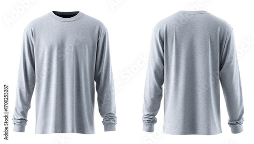 Light gray long-sleeve crewneck t-shirt, front and back views