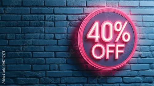 Light Pink Neon '40% OFF' Sign on a Brick Wall