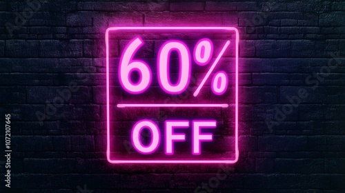 Light Pink Neon '60% OFF' Sign on a Brick Wall