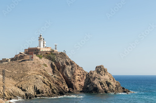 lighthouse, architecture, technology, warning, security, navigation, building, cliff, coast, antennae, light, horizontal, spain