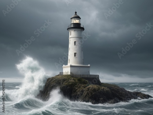 lighthouse, sea, ocean, light, coast, water, beacon, sky, landscape, storm, coastline, white, travel, safety, building, house, tower, navigation, cloud, island, beach, nature, cloud, rock, architecture