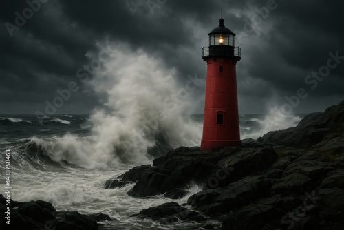 lighthouse, storm, ocean, wave, lightning, beacon, maritime, warning, danger, isolated, weather, navigation, structure, coastal, tall, safety, landmark, guide, architecture, powerful, dramatic, rocky, turbulent, water, sky, evening, dusk, cloud, torrential, rough, atmospheric, mast, nautical, offshore, glowing, visibility, ominous, majestic, rugged, spectacular